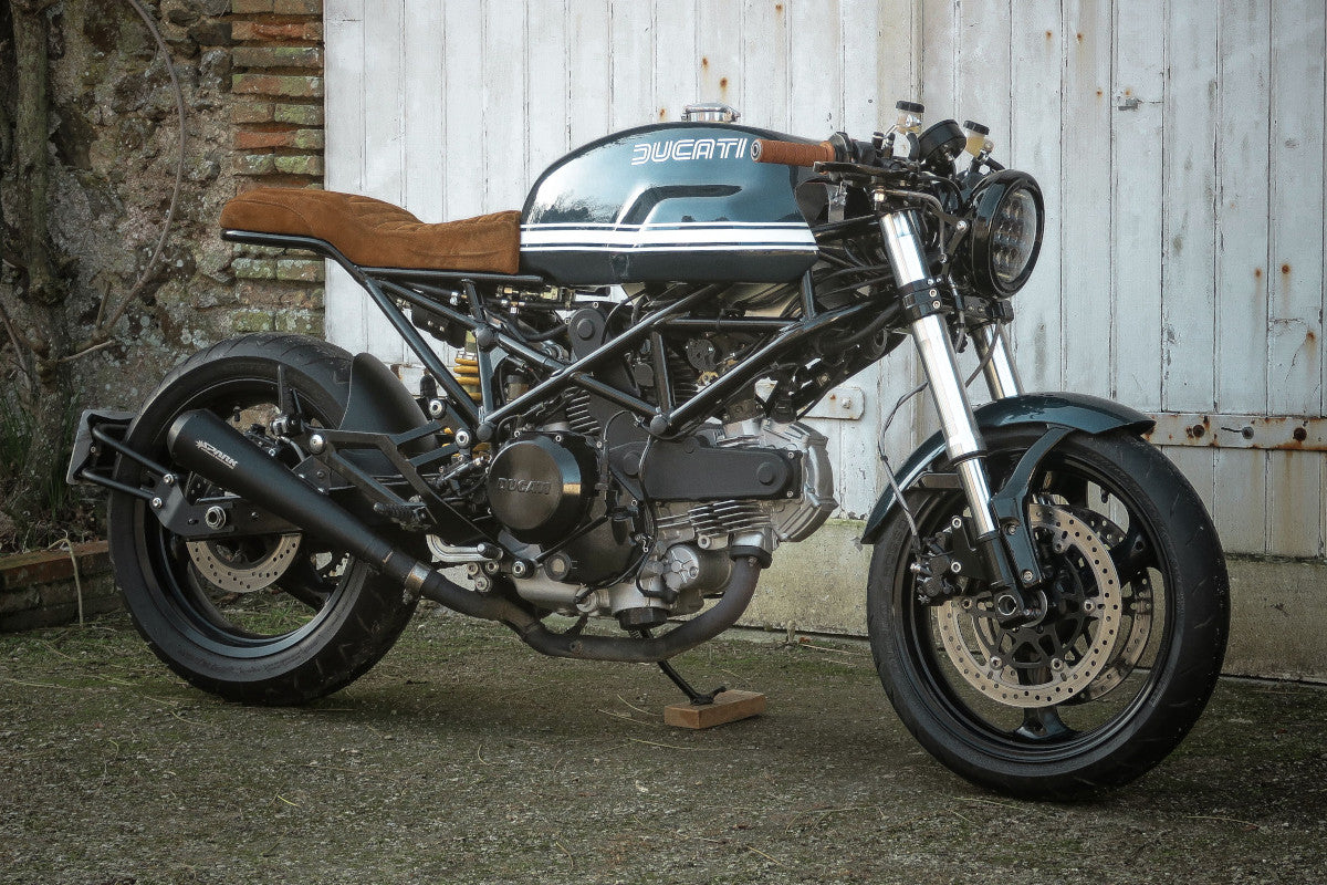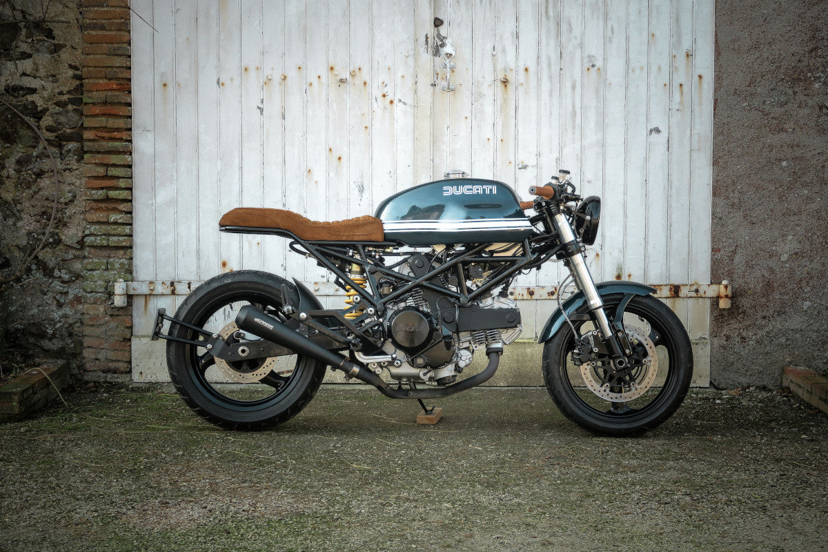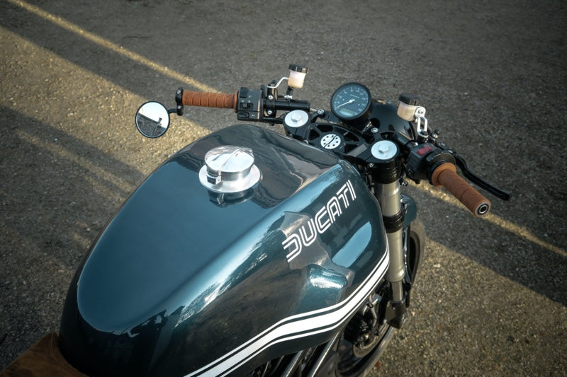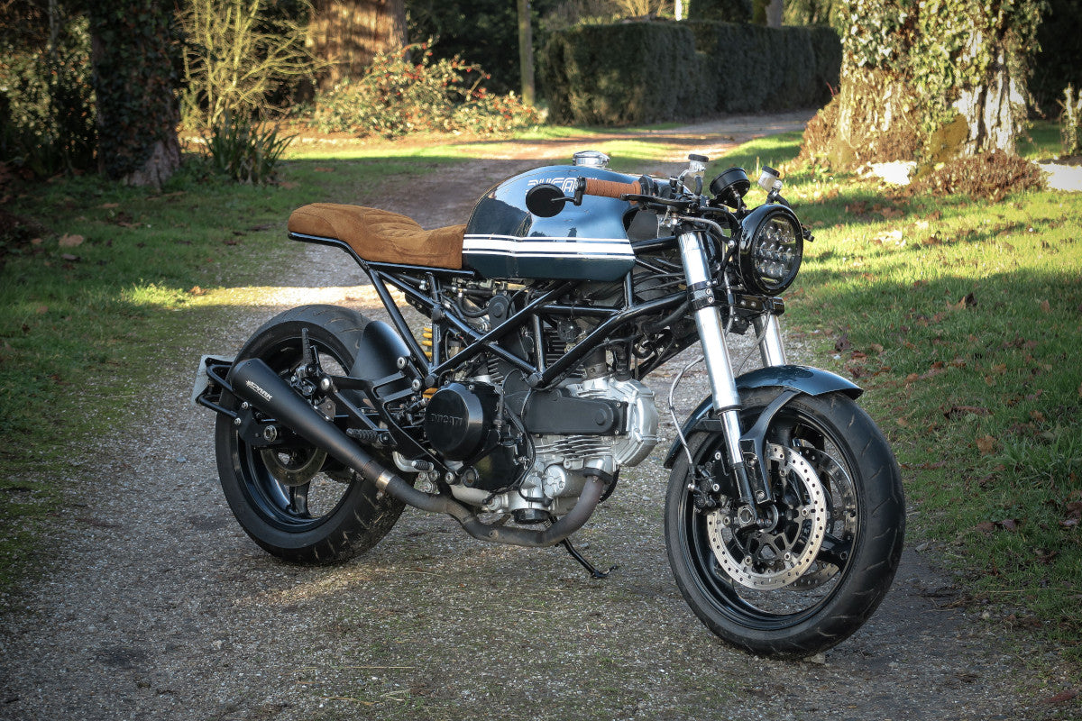 Gwenolé says the bike’s owner, Alexandre, who lives in Paris, loved his Monster, and wanted to keep and customize it rather than buy something new. Together, they planned on a classic design with modern amenities, which would result in a true-to-form modern café racer. A Paul Smart tank served as the crux of the entire project, outfitted with an external fuel pump. Gwenolé worked very hard to get the lines of the bike just right, particularly the tail section and saddle, which leaves enough room for Alexandre’s girlfriend to ride pillion. All work but the saddle and paint were done in-house.