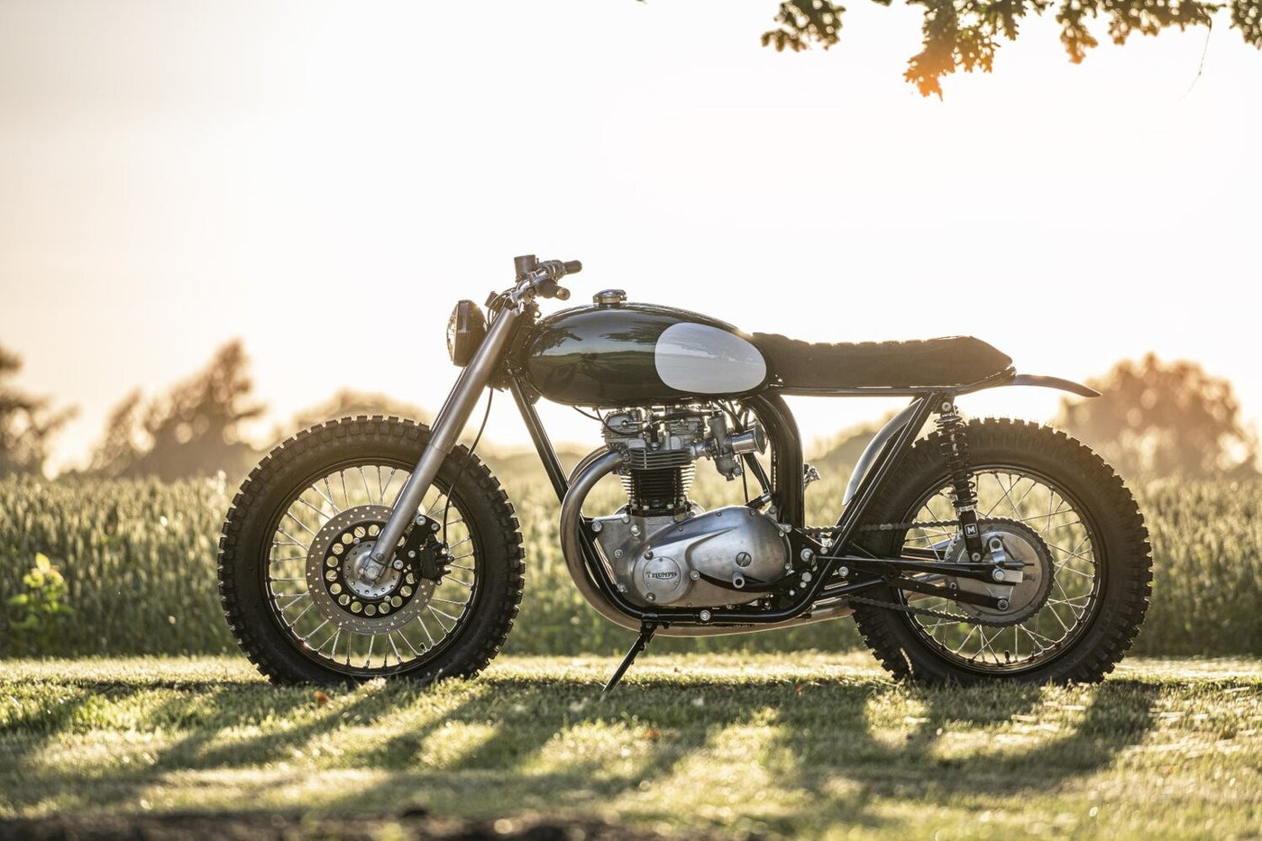 Moving on to the aesthetics, you will find an aluminum gas tank that’s placed in between custom handlebars and a suede leather saddle. We also spot a handmade rear fender taking pride of place below the artfully upholstered seat, and it’s flanked by dual Maxton shock absorbers.