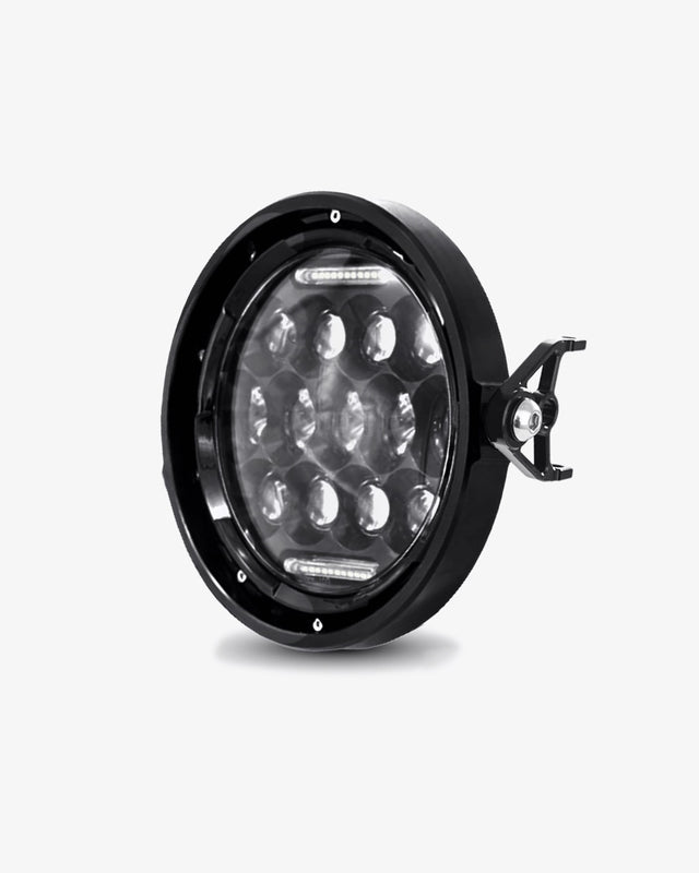 Featuring a precision machined rounded aluminium bezel and visible fixing screws, the Colt 75W Flush Mount LED Headlight seamlessly blends industrial design with advanced LED technology. With 13 projector LEDs and 3 functions, the Colt is a super-bright headlight that emits up to 4000 lumens and pulls significantly less power compared to OEM or similar aftermarket headlights. The Colt's slim profile flush mounting collar ensures the tightest possible mounting position and a much sleeker appearance compared to a traditional headlight housing set-up. Add a touch of elegance to your custom build with the timeless, functional and sleek Colt 7" LED Motorcycle Headlight.