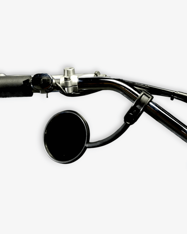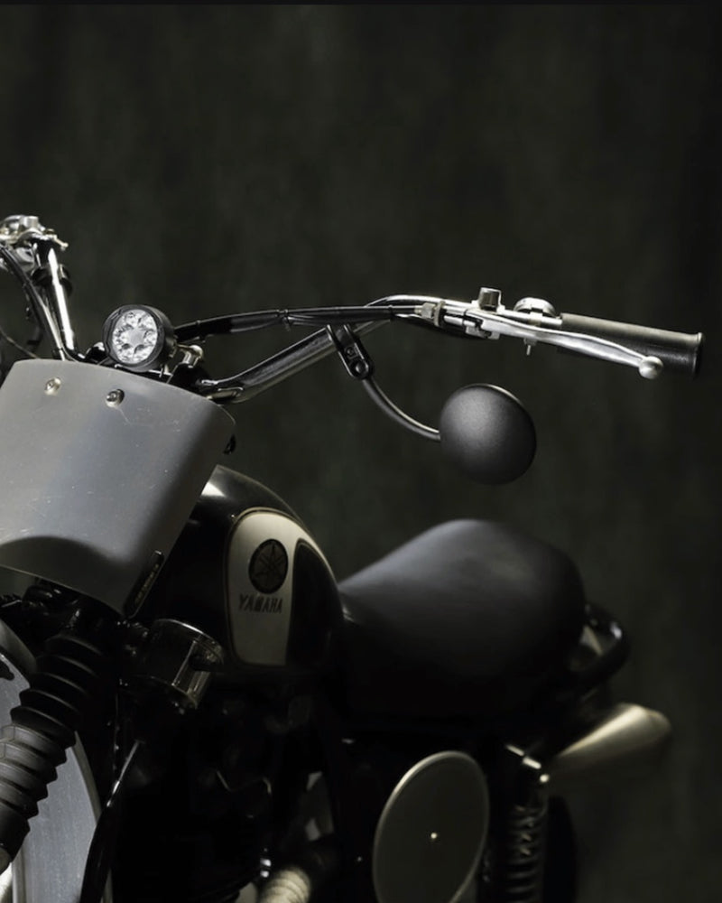 The Enzo Scrambler Mirror provides a sleek and stylish touch to any custom motorcycle build. Crafted in Japan from PET resin to increase anti-vibration capabilities, the Enzo mirror is perfect for scrambler and enduro style builds and cafe racer builds using our scrambler, tracker and mx style handlebars The Enzo Scrambler Bar Mount Mirror boasts an R1000 optical-grade convex glass to maximize your field of vision and weighs in at a mere 70g. The Enzo Scrambler Bar Mount Mirror mounts to 7/8" (22.2mm) and 1" (25.4mm) handlebars and is designed for universal installation underneath the handlebars. The Enzo Scrambler Bar Mount Mirror is available as one mirror for the left side, one mirror for the right side and two mirrors for both sides.