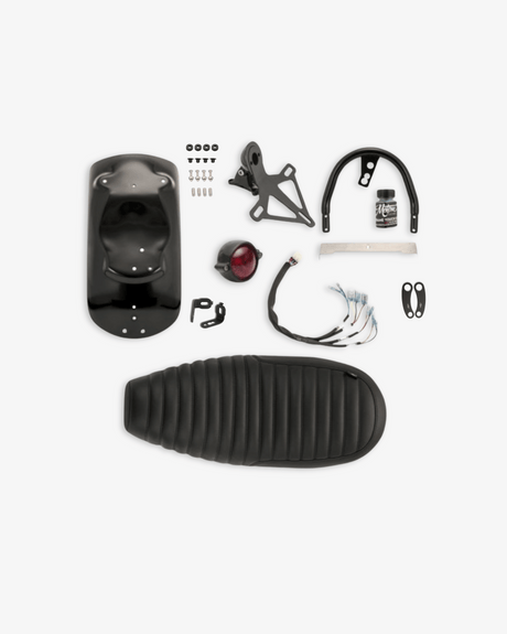 Crafted from strong 2mm mild steel, the Universal Steel Rear Loop For Tail Tidy comes in a range of widths (outer diameter 235mm, 255mm, 260mm) suitable for various motorcycle frames (outer diameter 22.2mm, 25.4mm, 28.6mm). Comes with 2 slugs for welding and fitment assistance. Recommended to purchase with our universal tail tidy kit which welds onto the loop for number plate and signal fitment. Also available as kits including a range of suitable seats for motorcycle specific fitments.