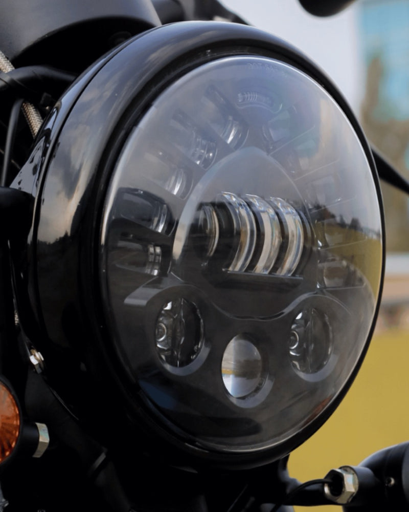 The Pro Vision 7″ LED Motorcycle Headlight beautifully combines a precision machined aluminium housing with modern high output LED components. Producing up to 34000 lumens via low beam, high beam and running lights, this 60W 7" LED Headlight ensures optimal brightness whilst pulling significantly less power. The cast aluminium housing is completely waterproof and significantly smaller than a conventional headlight. The Pro Vision 7″ LED Motorcycle Headlight is a headlight insert that can be mounted into your existing housing or solo mounted in any position for a cleaner custom finish. A slim low-profile gloss black headlight housing is also available for a complete upgrade.