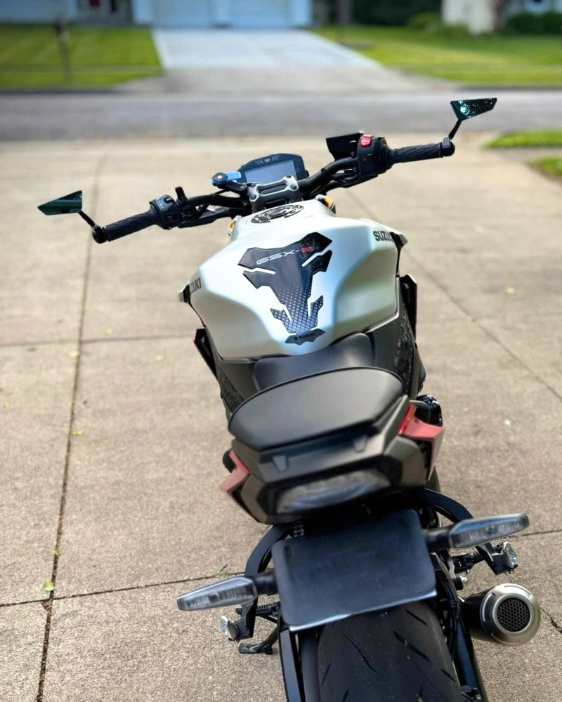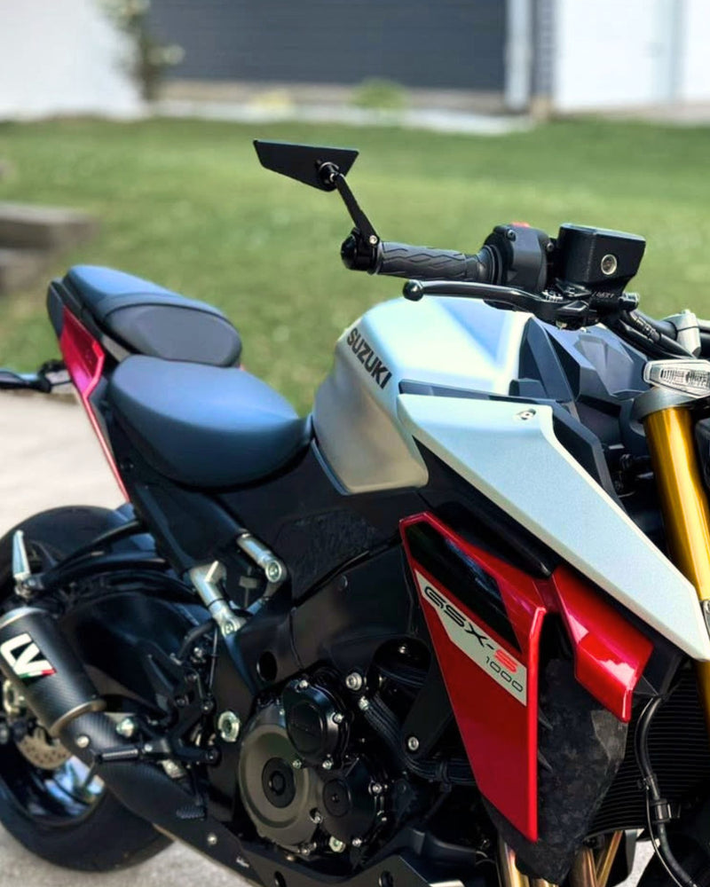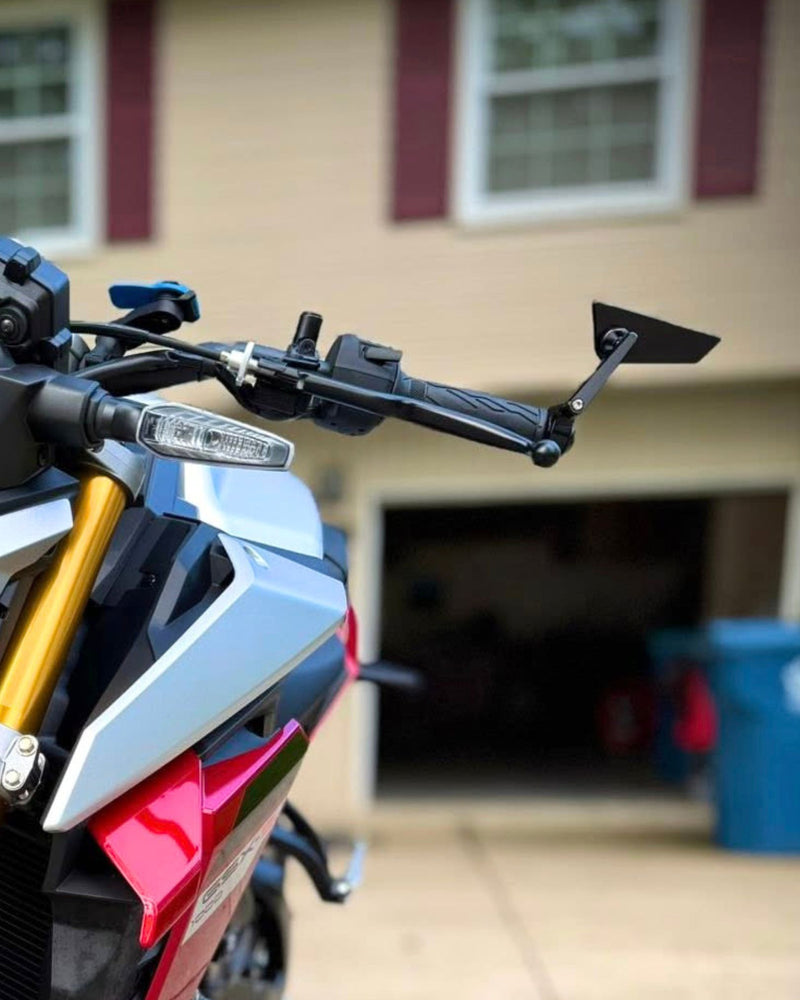 Engineered from T-6061 billet aluminium via precision CNC machining, the Cutlass Ultra-View™ Bar End Mirror Kit delivers refined aesthetics for modern classics, customs, naked and retro motorcycles. The sleek anodized gloss black exterior is complemented by Ultra-View™ optics, our optical grade UV treated anti-glare convex mirror lens designed to minimize light strikes and comply with Australian road regulations. The versatile Cutlass Mirrors can be mounted facing up or down, and mirror in or out, allowing for precise positioning to suit your riding style. The Cutlass Ultra-View™ Bar End Mirror Kit is sold as a pair of mirrors and includes knurled stainless steel mounting hardware to fit 22.2mm (7/8") handlebars. For a complete look, fill the holes left behind when removing your oem mirrors with our mirror blanking plugs.