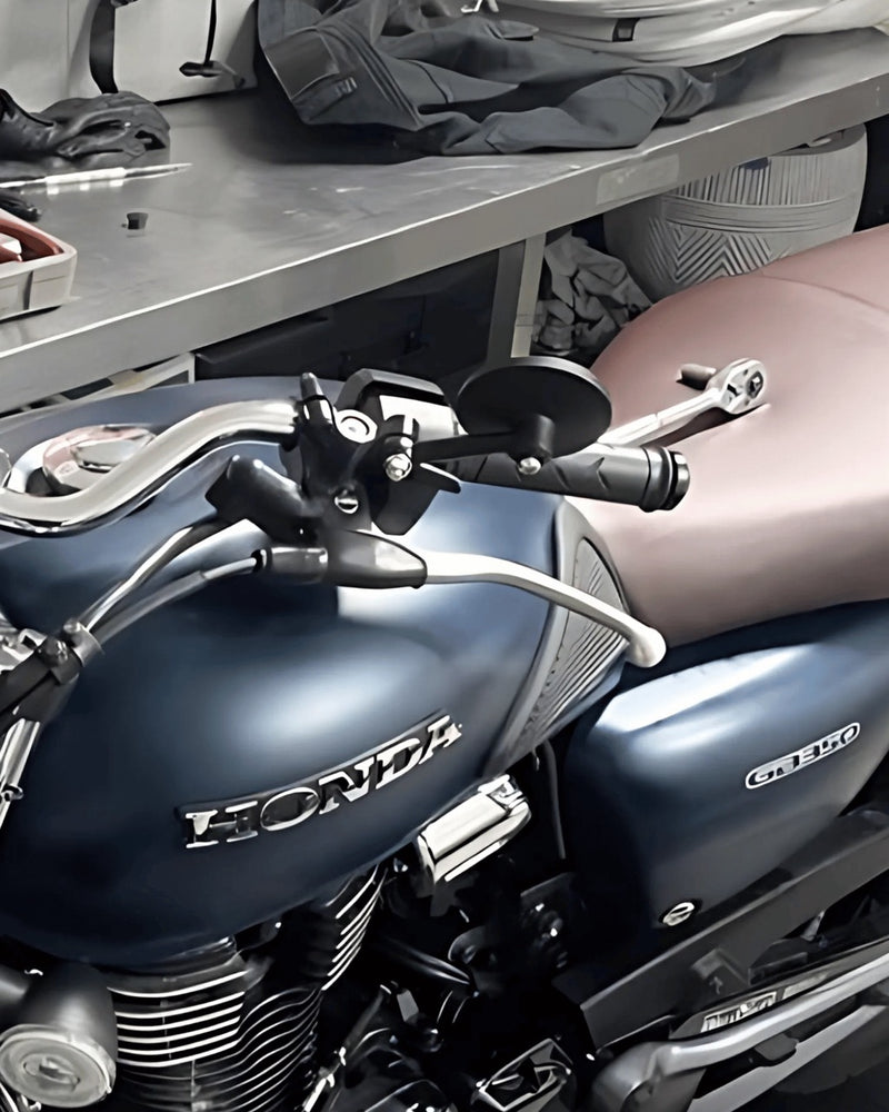 The Raco Short Arm Round Mirror features a sleek black finish that combines style with exceptional durability. Its reduced arm length distinguishes it from standard OEM mirrors while maintaining a classic look. The optical-grade convex glass offers an extended field of view and protection against light glare. This direct mount kit includes two mirrors and stainless steel hardware designed to fit OEM mounting points. Installation is straightforward, allowing for a quick upgrade from your original mirrors. For upside-down fitment, using a mirror mounting kit is advised to simplify the install.