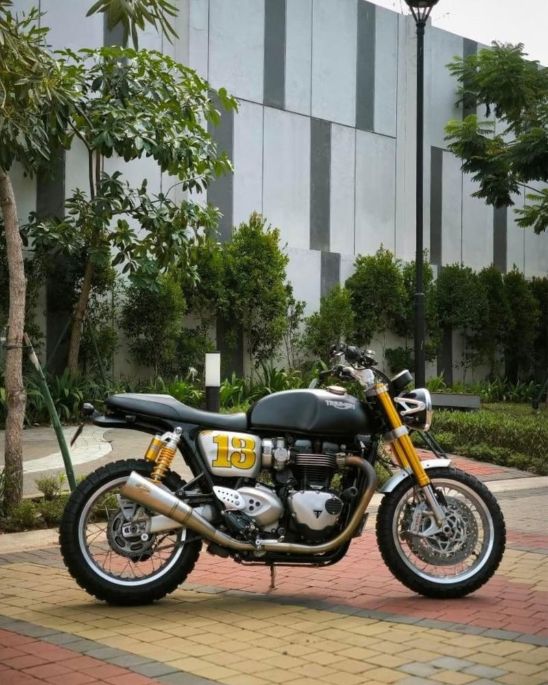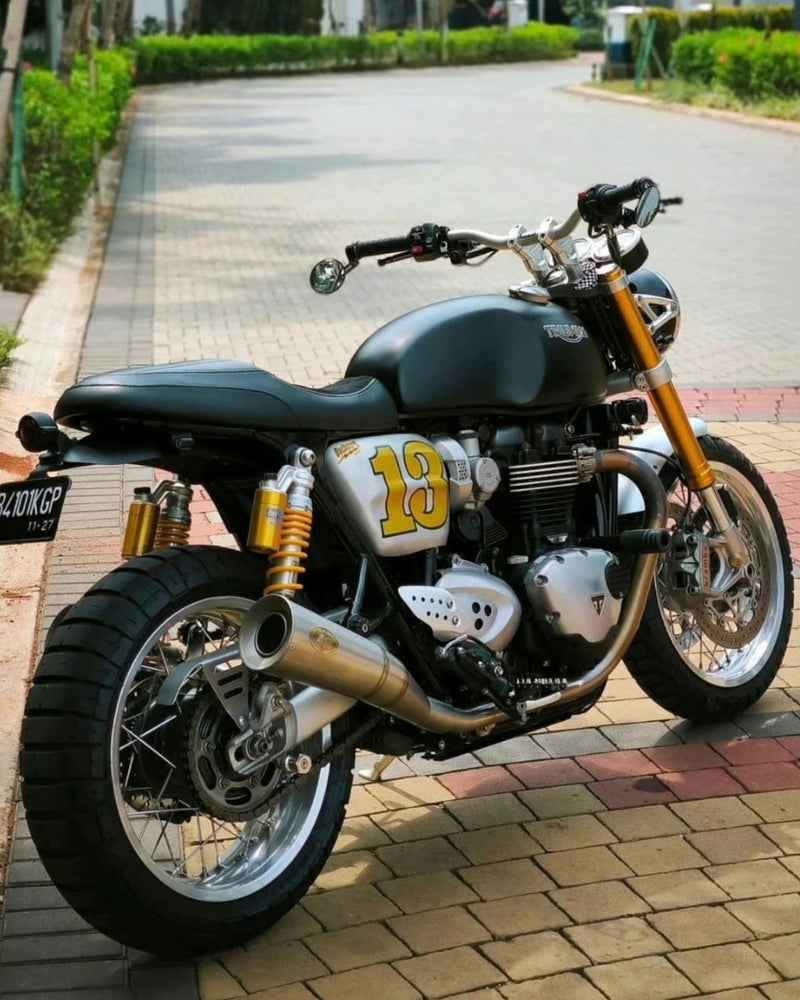 Transform your Thruxton 1200 with the TRX Shovel Fender & Tail Tidy Kit, where classic café racer style meets modern performance with a touch of Motone class. Crafted from brushed and black anodised 5000-series aluminium, this sleek upgrade fits all Thruxton models (Euro 4 & 5, R, S, TFC, FE) and is thoughtfully designed with a dedicated tray to house the ECU. The TRX Shovel Fender & Tail Tidy Kit includes the ultra-bright, e-marked El Dorado LED Tail Light with running, brake, and plate illumination, plus a laser-cut steel number plate bracket and L-clamps for indicators - all in one streamlined setup. Pre-drilled, plug-and-play, and complete with all required stainless steel hardware and gaskets, this is the ultimate rear-end refresh for your Thruxton.