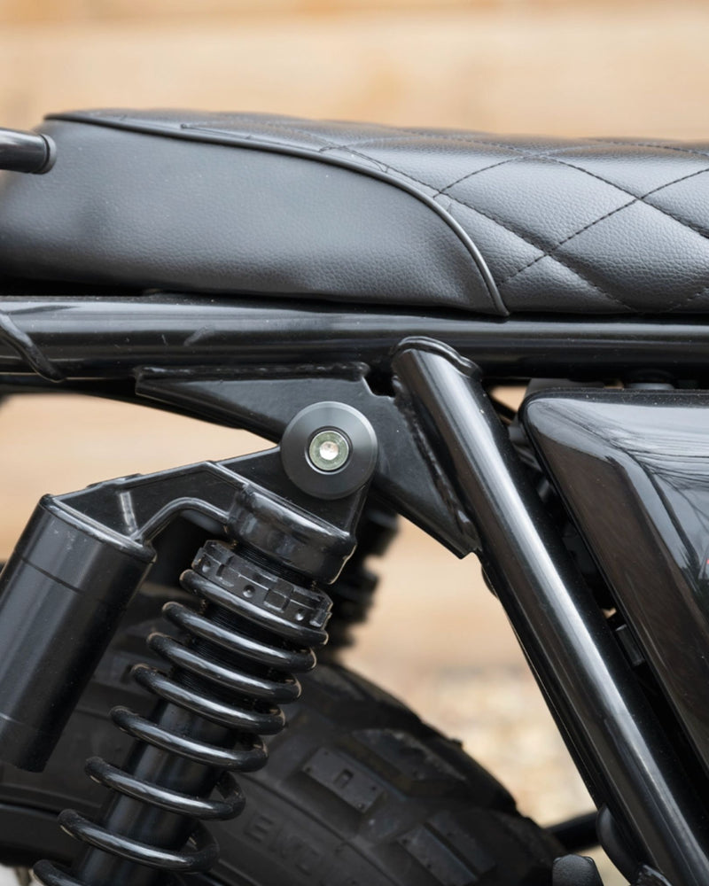 Made from black anodised aluminium, the Triumph Shock Mount Finisher Dress Up Kit features an improved design with a robust M8 threaded bolt. These covers enhance the refined look of Triumph motorcycles and perfectly complement our bar end finishers. Can be used for the top & bottom shock mounts on liquid cooled Triumph Bonneville T100, T120, Street Twin 900, Street Cup, Street Scrambler & Speed Twin 900. Installation is very quick and easy. Sold in pairs.
