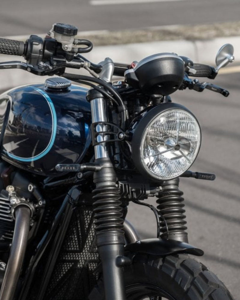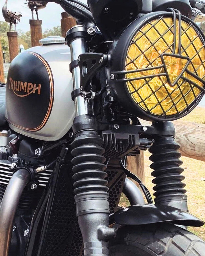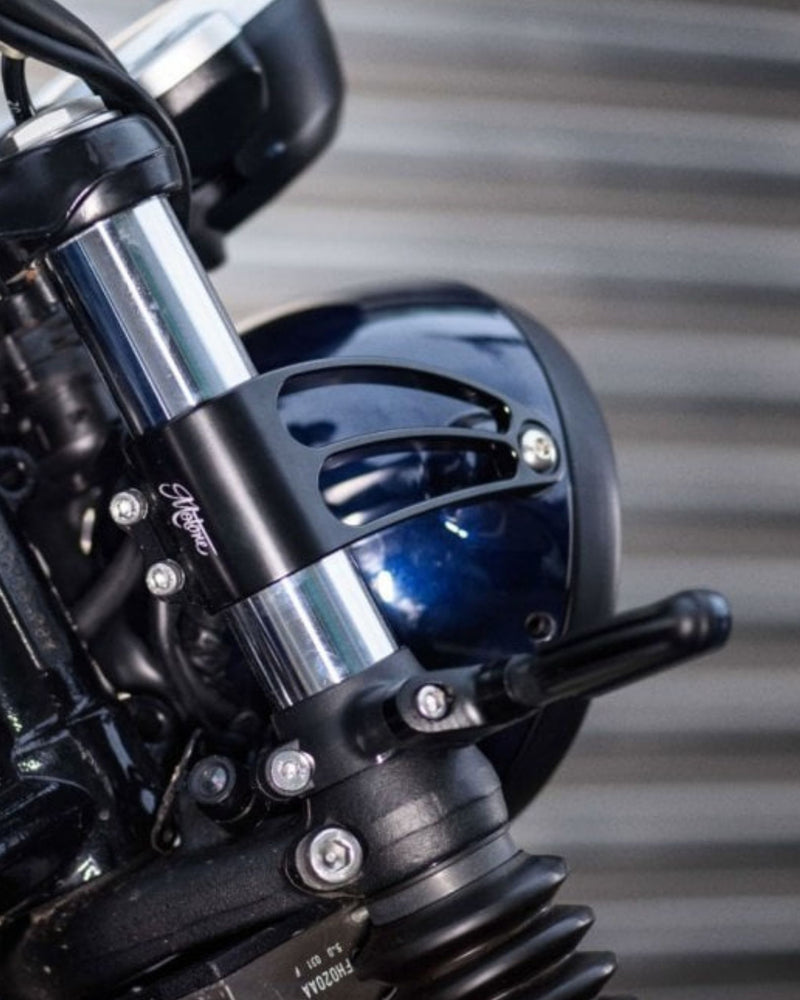 The Motone Regulator Rectifier Relocation Bracket For Triumph LC 2016+ repositions the regulator by rotating it 90 degrees downward to fit beneath the bottom yoke, enabling the headlight to be tucked closer to the bike’s frame for a cleaner appearance. While the stock wiring provides sufficient length for this relocation, it’s advisable to remove the tank and free some cables from their bindings underneath to increase flexibility. Compatible with the bottom yoke of all 2016 and newer T100 and T120 models, it also fits first-generation Street Twin, Street Scrambler, and Street Cup models prior to the regulator’s factory relocation behind the radiator. Highly recommended for use with custom headlight brackets.