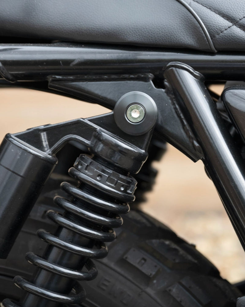 Made from black anodised aluminium, the Triumph Shock Mount Finisher Dress Up Kit features an improved design with a robust M8 threaded bolt. These covers enhance the refined look of Triumph motorcycles and perfectly complement our bar end finishers. Can be used for the top & bottom shock mounts on liquid cooled Triumph Bonneville T100, T120, Street Twin 900, Street Cup, Street Scrambler & Speed Twin 900. Installation is very quick and easy. Sold in pairs.