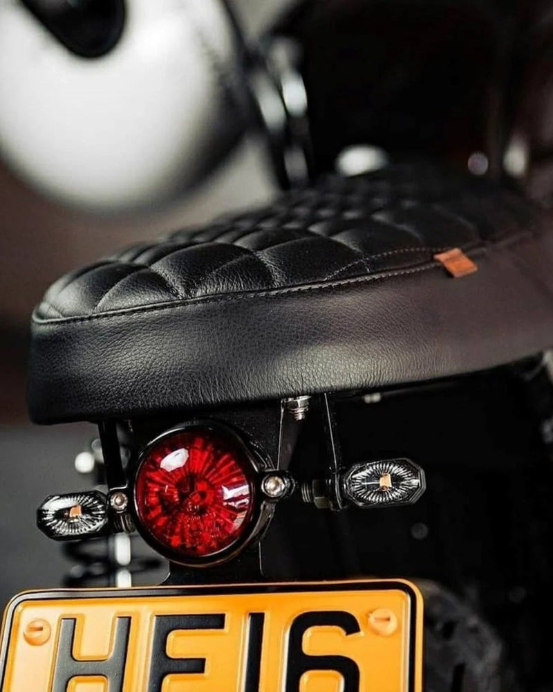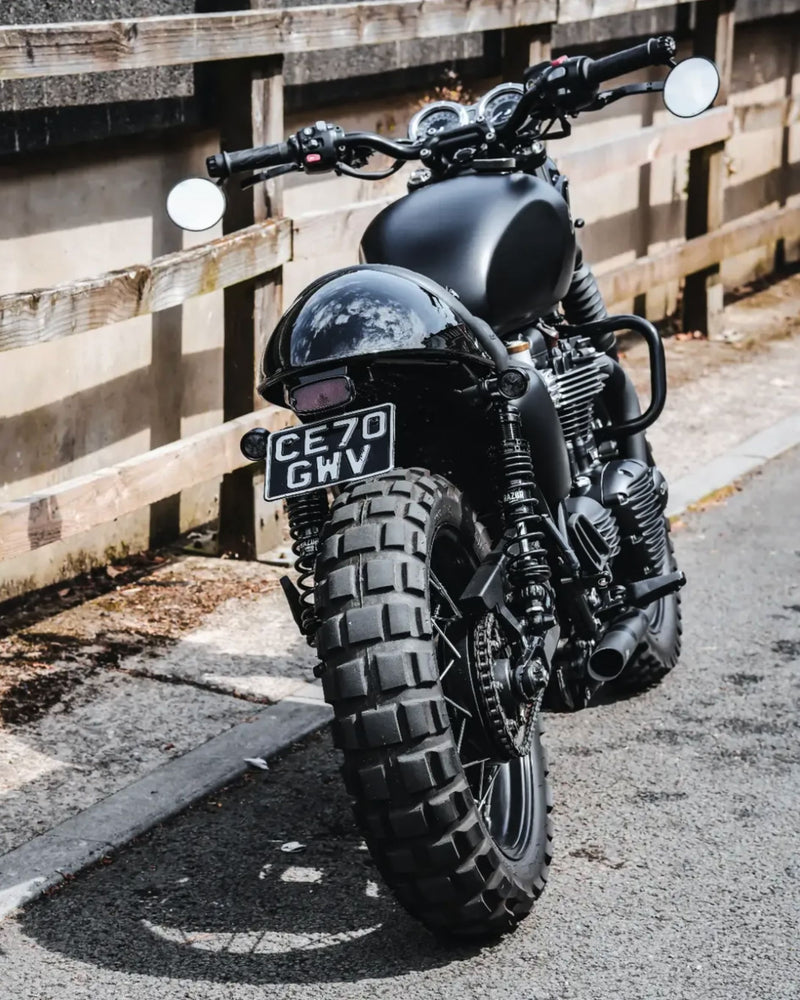 The Motone Tail Tidy Kit is crafted to slim down your Triumph’s rear end in true café racer style. Blending performance, style, and simplicity - all with that signature Motone fit and finish - this plug-and-play kit includes everything you need to clean up the ghastly oem rear end on 2016+ liquid-cooled models - the Bonneville T100 and T120, Street Twin, Street Scrambler, Scrambler 900 and Speed Twin 900. Crafted from anodized black cnc'd aluminium the modular Motone Tail Tidy 2.0 includes a storage tray, brake & tail light, license plate holder, number plate light and removable indicator mounts for a fully custom setup. Installation is a breeze with all necessary hardware supplied, plus a colour-coded and labelled wiring loom that allows any combination of tail light, turn signals or 3-in-1s to be installed with ease. Choose from the El Dorado Round Tail Light or Gort Rectangle Tail Light, however indicators are sold separately. The Motone Tail Tidy Kit For Triumph LC Twins can be easily installed with simple tools in under 2 hours, simply bolt it all on and blast off.