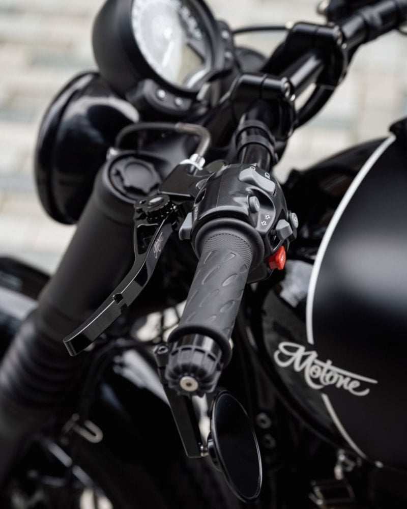 The Motone Pike Adjustable Brake and Clutch Lever Set is the perfect enhancement for your Triumph Street Twin 900. Made entirely from billet 6061-T6 aluminium with a sleek anodised gloss black finish, these levers deliver superior comfort and style tailored for discerning Triumph riders. Designed to complement the Modern Classic aesthetic, the Pike levers are shorter than the originals and feature five adjustable reach positions for personalized ergonomics. Renowned for their premium craftsmanship, Motone's Pike Levers come with a one-year extendable warranty and include straightforward installation instructions for easy fitting.