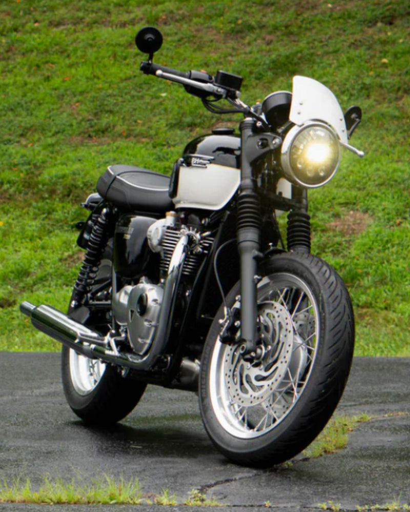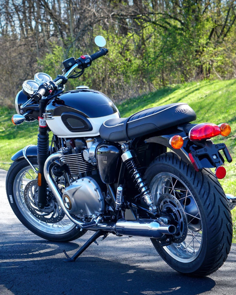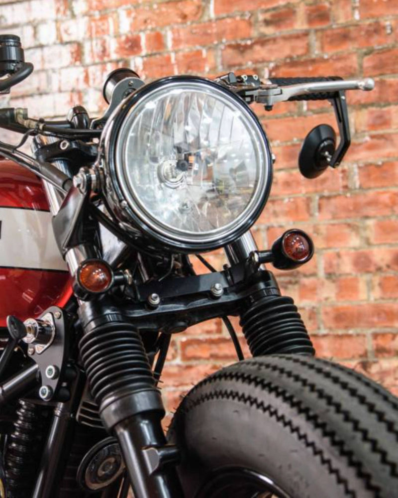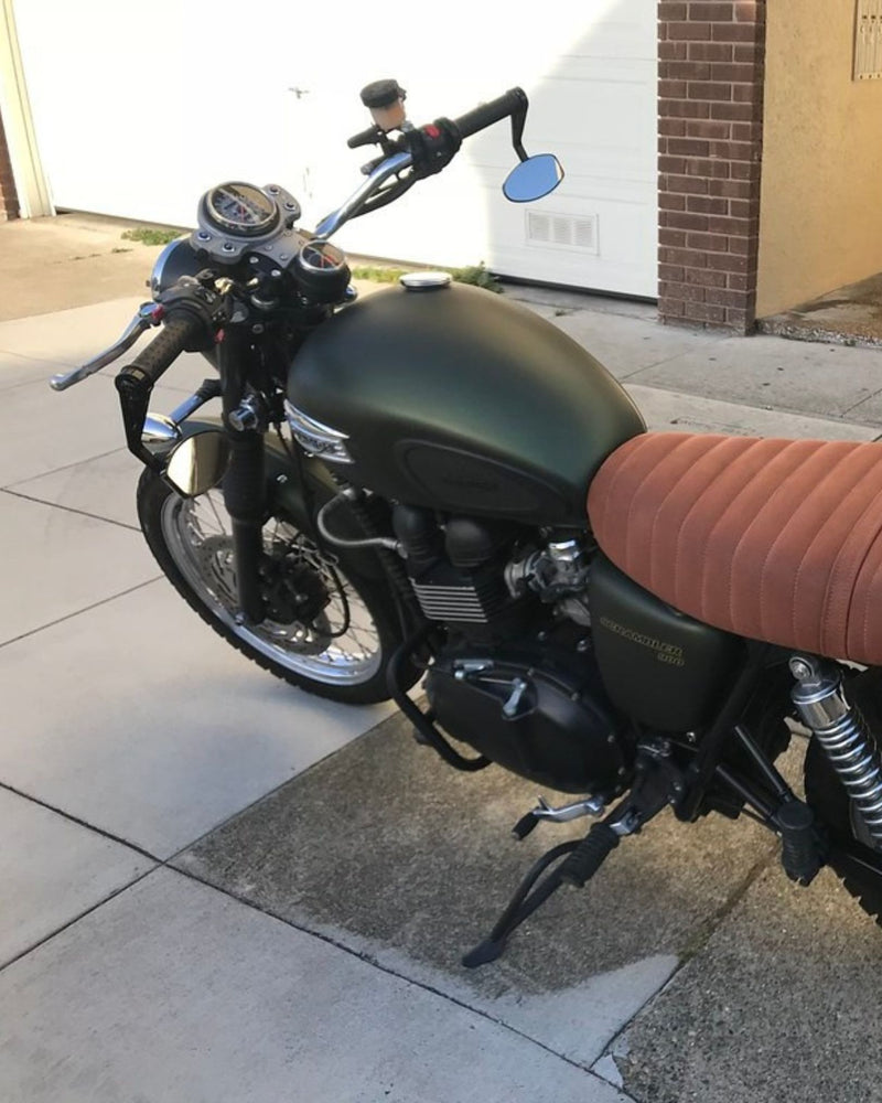 Crafted from billet T-6061 aluminum these bar end mirror mounting adapters are specifically designed for air-cooled Triumph Bonneville T100, Scrambler 900 and Thruxton models from 2001 to 2015 with one-inch handlebars. The Triumph Air-Cooled Bar End Mirror Mounting Kit screws directly into the original female-threaded bars using the included stainless steel mounting bolts, allowing for a simple and secure fit of our bar end mirrors. Sold in pairs.