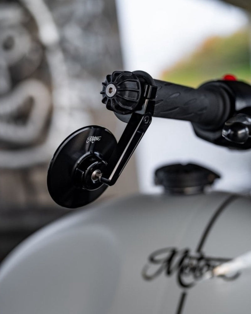 The Motone Turismo-S 80mm Billet Bar End Mirror combines a sleek ultra-thin 4mm mirror head with a robust 6061-T6 billet aluminium body finished in anodised gloss black. Its convex, TÜV-certified 80mm automotive glass offers superior scratch resistance compared to polished aluminium surfaces, ensuring durability and clear visibility. Equipped with billet adapters, it fits both 22mm (7/8") and 25.4mm (1") handlebars, making it extremely versatile to fit most motorcycle setups. Designed with expert craftsmanship, the Motone Turismo-S 80mm Billet Bar End Mirror blends functionality and style for enhanced rider safety and precision. Sold individually, order quantity +2 for a pair.