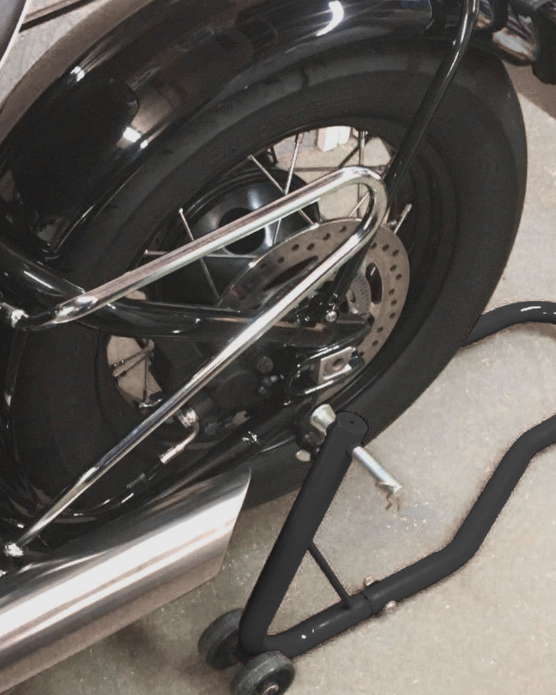 Faster and more secure way to connect a paddock stand to your Royal Enfield